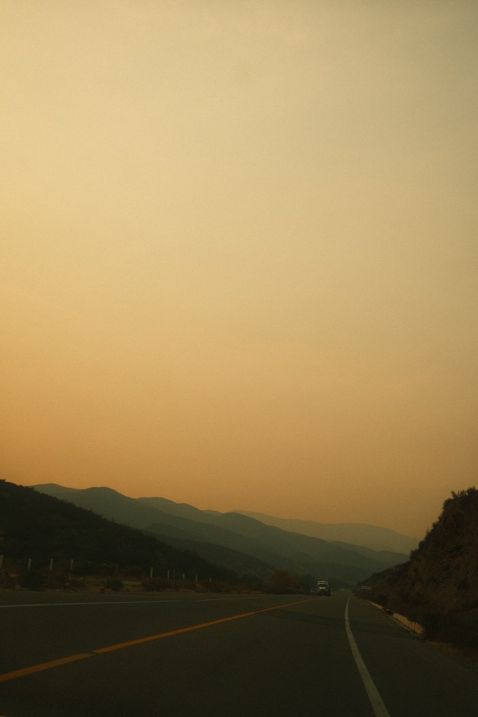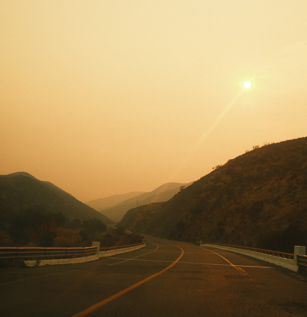 El valle y el humo de los incendios de enero 2025 : a un lado del camino